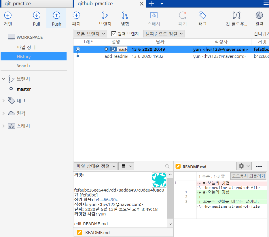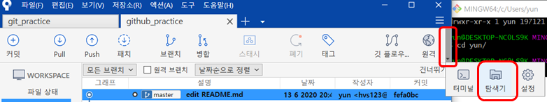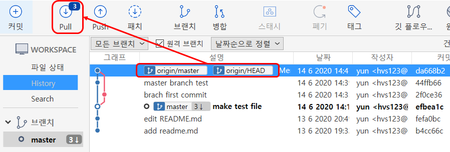 다시 바로 아래 있는 master 브랜치를 더블클릭한다.