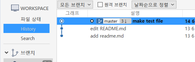 소스트리와 다르게 그래프가 없이 밋밋하다.