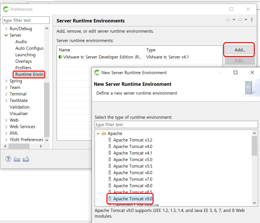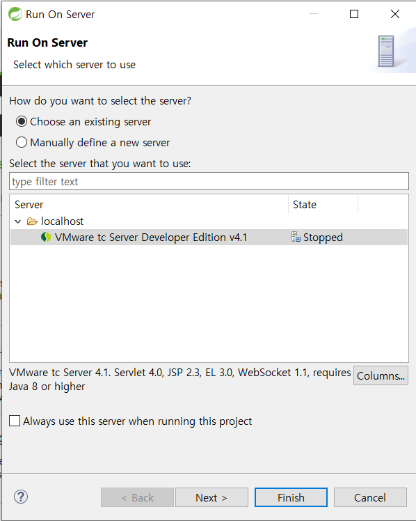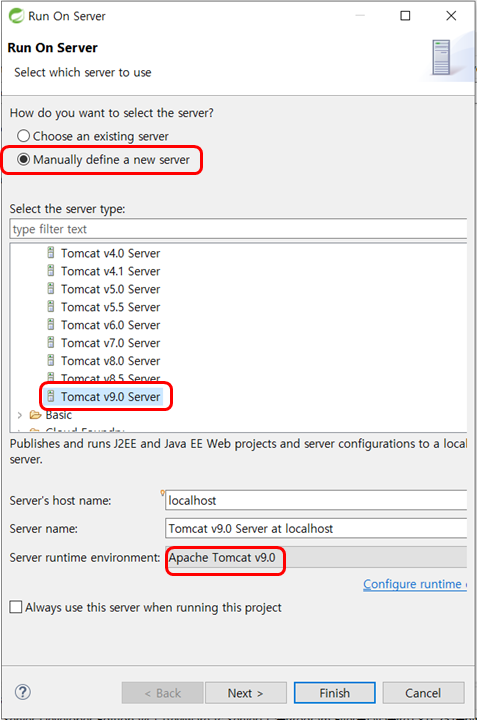 Browse를 눌러 압축이 풀린 톰캣 폴더를 지정한다.