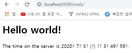 아직 인코딩 설정이 되지 않아 한글이 제대로 출력되지 않는다.