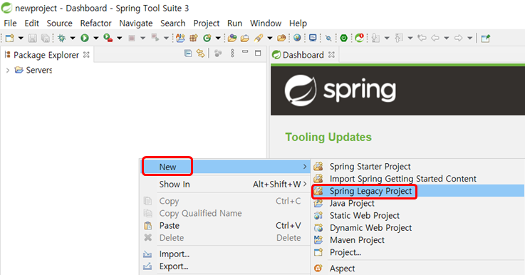 pom.xml에서 스프링 버전을 아래와 같이 최신버전으로 변경한 후 저장한다.