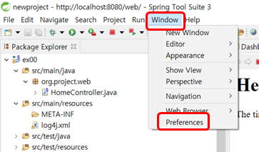 프로젝트가 생성되면 sts가 내장하고 있는 서버를 이용하여 프로젝트를 실행할 수 있다.