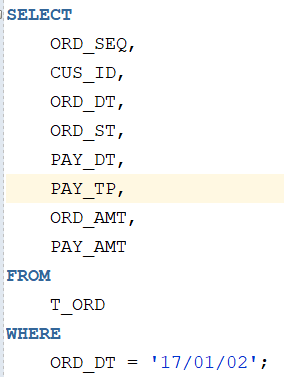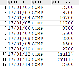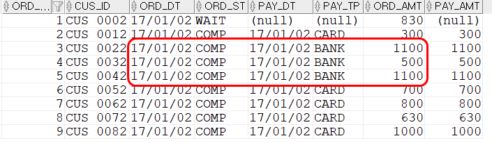 17년 1월 2일 데이터가 나오고 지불유형이 'BANK'인 주문금액이 아래와 같이 표시되어 있다. 주문 금액을 합하면 위에 결과와 같다.