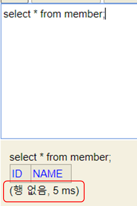 member 테이블 생성 후 아래와 같이 select 쿼리를 날려 아래와 같이 결과가 나오면 된다.