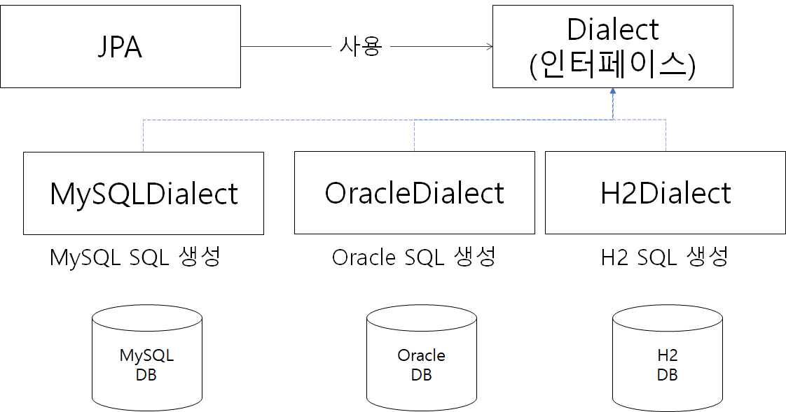 - JPA는 특정 데이터베이스에 종속적이지 않은 기술
