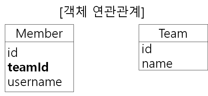 객체에서는 값만 그대로 세팅해놨기 때문에 Team과의 연관관계가 없다.