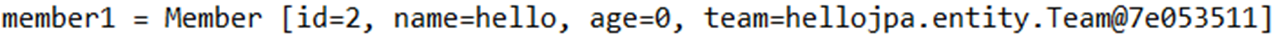 return "Member [id=" + id + ", name=" + name + ", age=" + age + ", team=" + team + "]";